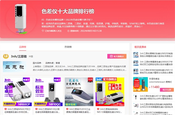 關(guān)于色差儀的品牌排行,有很多不同的聲音和意見,以下列舉兩個(gè)平臺(tái)的排行,主要以國內(nèi)的品牌為主。