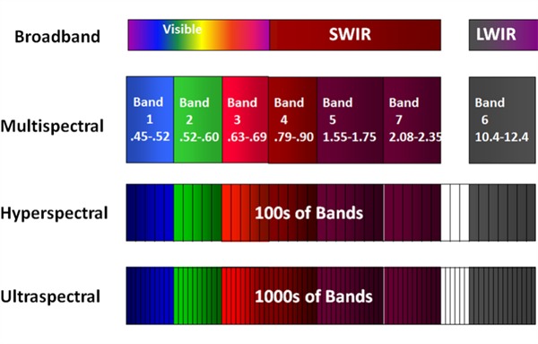 光譜范圍為可見(jiàn)光,近紅外,短波紅外,中波紅外,熱紅外,超光譜成像系統(tǒng)可提供成千上萬(wàn)個(gè)非連續(xù)波段的圖像,主要應(yīng)用于復(fù)雜的圖像分析。