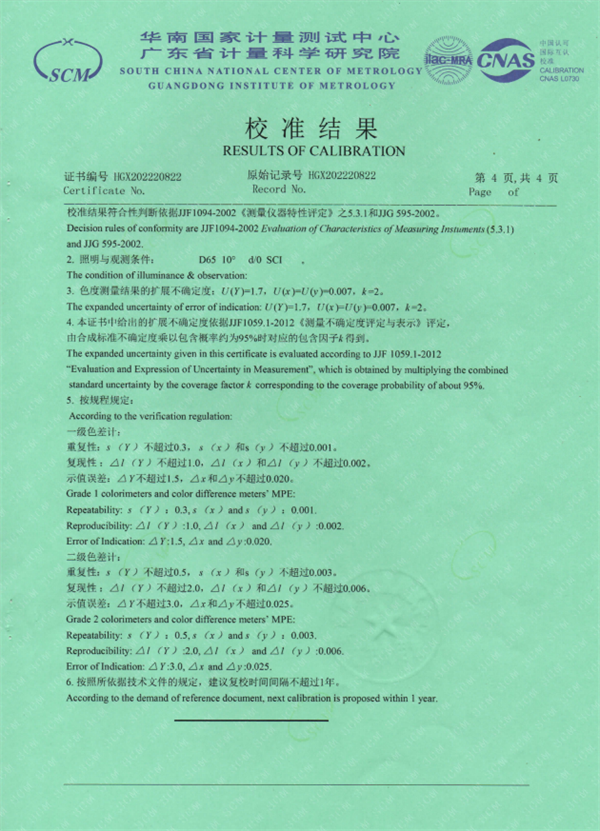 為了觀察得更為直觀,可以參看一級(jí)色差儀計(jì)量證書.