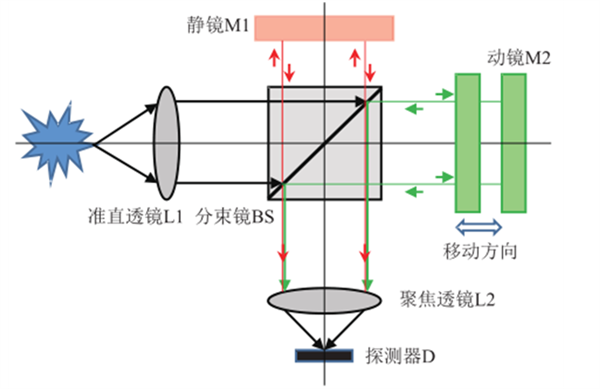 法國物理學(xué)家Connes在研究光譜復(fù)原的ghost現(xiàn)象時,首次提出該現(xiàn)象是由于動鏡構(gòu)件在測量時運動的不準(zhǔn)確性所導(dǎo)致的。針對該問題,他提出使用高精度的激光干涉型條紋來測量動鏡的位移,消除了ghost現(xiàn)象,提高測量精度。