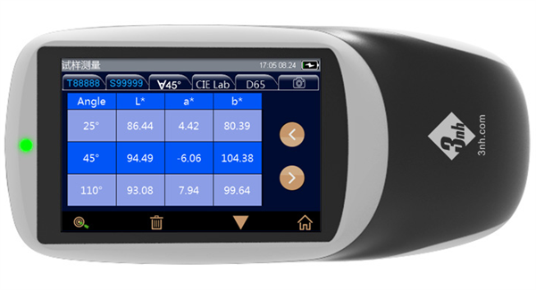 3nh多角度分光測色儀用于評估效果面漆的表面外觀受不同的觀察角度和觀察條件的影響,可對金屬色、珠光色及其它復(fù)雜的特殊效果顏色產(chǎn)品提供精確一致的色彩測量。