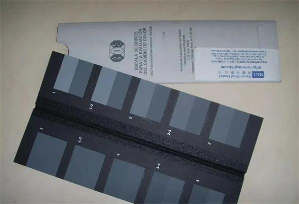 將紡織品原樣和大貨樣各一塊并列置于同一方面按同一方向緊靠,灰卡也靠近同一平面上。背景應(yīng)是中性灰顏色,近似本灰卡1級和2級之間(近似蒙賽色卡N5)。如需避免背襯對紡織品外觀的影響,可取原布二層或多層襯墊于原樣和試后樣之間的色差。