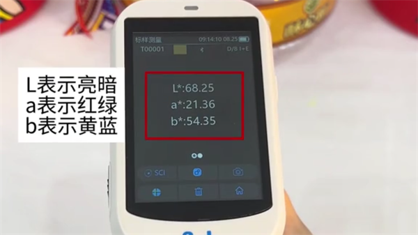 將色差儀緊貼在紡織品表面,按下測(cè)量鍵進(jìn)行測(cè)量。注意測(cè)量時(shí)選擇合適的測(cè)量口徑。測(cè)量完成后可以直接在測(cè)量屏幕查看測(cè)量結(jié)果。