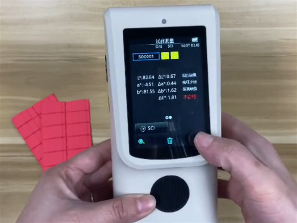 4. 開始測量。按下測量鍵,等待一段時(shí)間(通常為幾秒到十幾秒),色差寶會自動計(jì)算出樣品的顏色差異值,并在顯示屏上顯示。