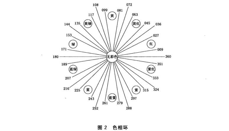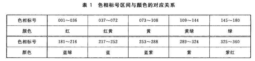 2.2.2色相標號區(qū)間與顏色的對應關(guān)系色相標號區(qū)間與顏色的對應關(guān)系見表1。