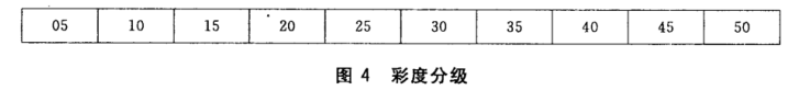 彩度標號從05~50十等分延色相環(huán)由內(nèi)向外依次遞增,彩度分級見圖4。彩度小于05的極低彩度用00表示。