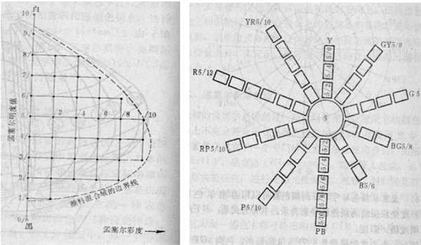 塞爾顏色圖冊(cè)》中一般給出每種色調(diào)的2.5,5,7.5,10四個(gè)等級(jí),全圖冊(cè)包括40 種色調(diào)的顏色卡片。