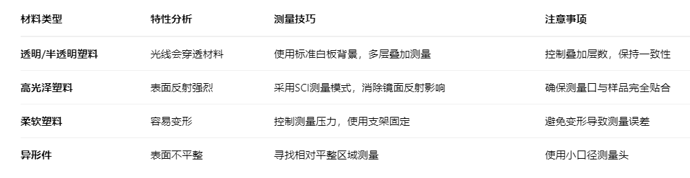 針對不同特性的塑料材料,需要采用相應(yīng)的測量技巧: