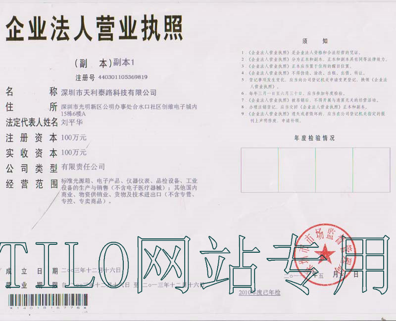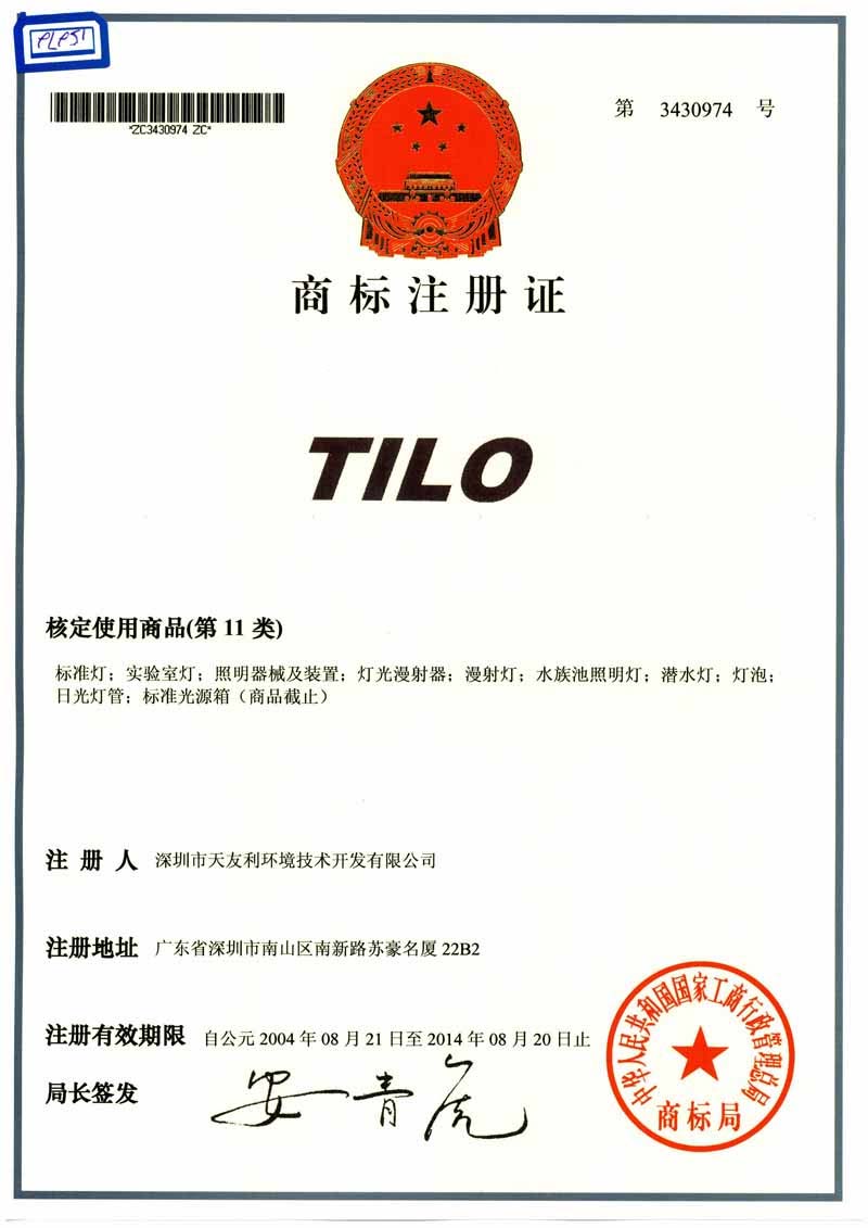 深圳市天友利標(biāo)準(zhǔn)光源有限公司、深圳市天利泰路科技有限公司(生產(chǎn)廠家)成立于1998年12月30日,先后注冊(cè)了商標(biāo):TILO、TAYOLE和天友利等,并在香港也成立了公司:卡羅卡超香港有限公司。
