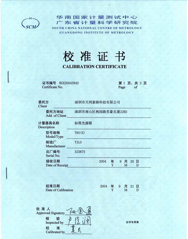 天友利TILO產品于2004年起全部通過華南國家計量測試中心檢測