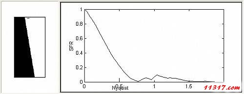 新名詞 SFR!Spatial frequency response (SFR) 主要是用于測量隨著空間頻率的線條增加對單一影像的所造成影響。簡言之SFR就是MFT的精簡版。因為測量MFT需取得昂貴的正弦樣版,并且需換算大量的數(shù)據(jù)。因此,PIMA開發(fā)了這款 較低成本的SFR作為替代品?;旧蟂FR只需一個雙色調(diào)的黑白斜線(如下左圖所示)即可換算出約略相等于MFT的值的解像力評鑒圖。