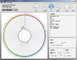 該測(cè)試提供易于管理、而又有效的測(cè)試方法測(cè)試個(gè)體色覺(jué)。用于政府和工業(yè)界應(yīng)用40多年,測(cè)試系統(tǒng)由4盒共85個(gè)橫跨可見(jiàn)光譜的可移動(dòng)式色棋(色相漸變)組成。通過(guò)按色相排列色棋順序測(cè)試色覺(jué)異?;蚱鋬A向性。包括基于 Windows 的電腦評(píng)分軟體。4盒色棋裝于鋁合金手提箱內(nèi)。 必須在日光條件下進(jìn)行這個(gè)測(cè)試,例如 GretagMacbeth SpectraLight 和 Judge 查看室提供的照明。Farnsworth-Munsell 100 色相測(cè)試用于將具有正常色覺(jué)的人分成優(yōu)異、一般和差的辨色能力等級(jí),可測(cè)試色覺(jué)缺陷人員的色弱區(qū)域。