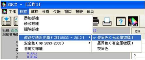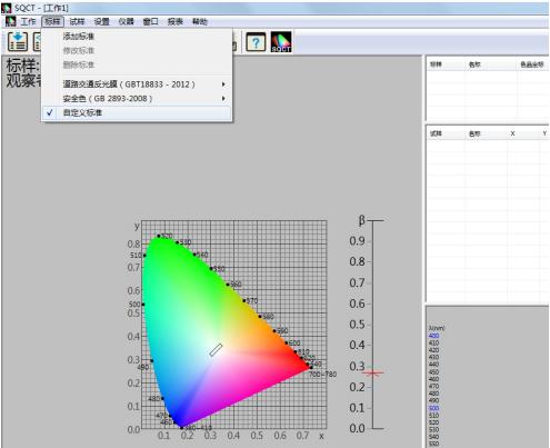 針對(duì)國(guó)內(nèi)交通路標(biāo)使用較多的標(biāo)準(zhǔn)GB/T 18833,SQCT軟件將該標(biāo)準(zhǔn)中的標(biāo)準(zhǔn)色域納入其中,客戶只需根據(jù)自己需要進(jìn)行選擇即可。