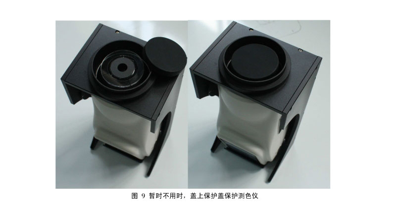 測(cè)色儀裝配在NS多功能測(cè)試組件上面,長(zhǎng)期不用時(shí),要及時(shí)裝上測(cè)色儀保護(hù)蓋,并蓋上黑腔蓋板,保護(hù)測(cè)色儀。