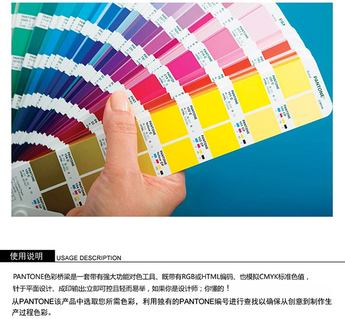 它可用于選擇和指定PANTONE專色,進而確定以CMYK復制PANTONE色彩時的顯示效果,或在顯示器和網頁上創(chuàng)建更佳的PANTONE色彩顯示效果。提供HTML和sRGB值,以便在設計軟件中應用色彩選擇。包含色彩指標、照明評估工具、數碼影像色彩校正工具和設計軟件.